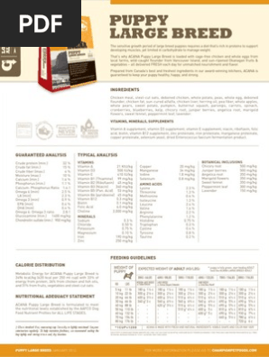 A nagytestű kölyöknek rengeteg fehérjére van szüksége az ideális izomzat kifejlődéséhez de az étrendjének kevés szénhidrátot és kalóriát kell tartalmaznia mivel a túlsúly káros terhelést jelent a növekedésben lévő csontozatra és ízületekre. Use a standard 8 oz. This acana large breed puppy review is going to walk you through key details about this company and its philosophy on quality dog food. Acana puppy large breed features an rich variety of farm fresh ingredients that are raised or fished by people we know and trust deemed fit for human consumption and then delivered to our award winning kitchen fresh or raw.