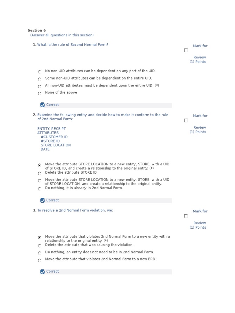 Customer id store id store location date mark for review 1 points. A unique identifier can only be made up of one attribute. Examine the following entity and decide which attribute breaks the 2nd normal form rule. Class id duration subject teacher name and address.