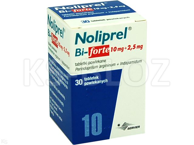 Noliprel tabletki powlekane 2 5 mg 625 mg lek złożony w postaci tabletek powlekanych zawiera dwie substancje czynne. Noliprel to lek złożony zawierający 2 5 mg perindoprilu z argininą oraz 0 625 mg indapamidu. Je to antihypertenzívum a používa sa na liečbu vysokého krvného tlaku hypertenzie. 2 5 mg peryndoprylu z argininą co odpowiada 1 6975 mg peryndoprylu 0 625 mg indapamidu.