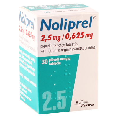 Noliprel 2 5 mg. 1 time day. Noliprel 2 5 mg 0 625 mg plėvele dengtos tabletės. Noliprel arg 2 5 mg 0 625 mg este o combinaţie a două substanţe active perindopril şi indapamidă. Pentru ce se utilizează noliprel arg 2 5 mg 0 625 mg perindoprilul aparţine unei clase de medicamente numite inhibitori ai eca.