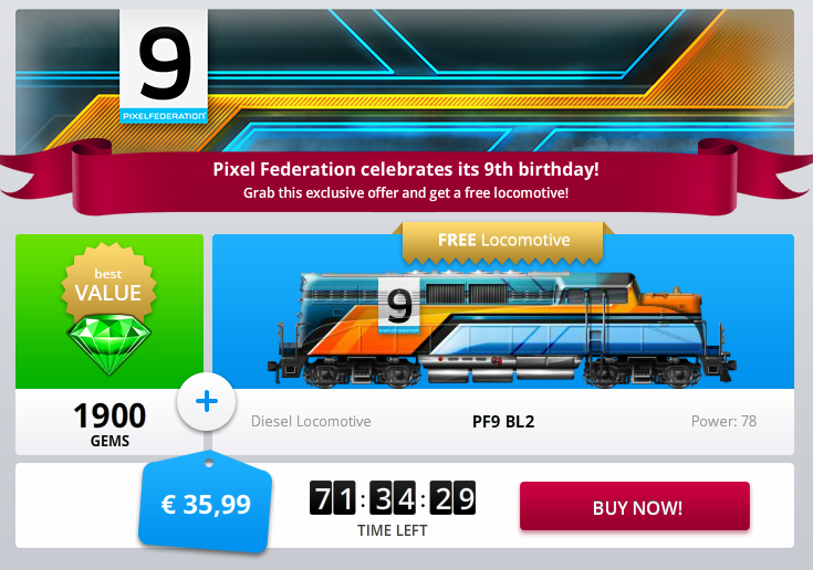 Become a railroad magnate and enjoy the largest collection of trains from all periods. Pixel federation is a game development company that creates free to play games. Game settings and destinations have returned to normal scaled andy is available for another week pixel federation s 13th birthday as a birthday present each player receives 100 collect it from giftbox before it expired as it is available for a week. 320 279 edits were made in the 9 years 1 month s and 22 day s since this wiki was created.