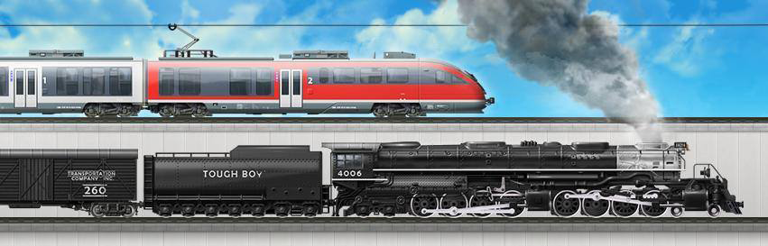 Begin with the oldest steam engines and improve to the latest maglevs.