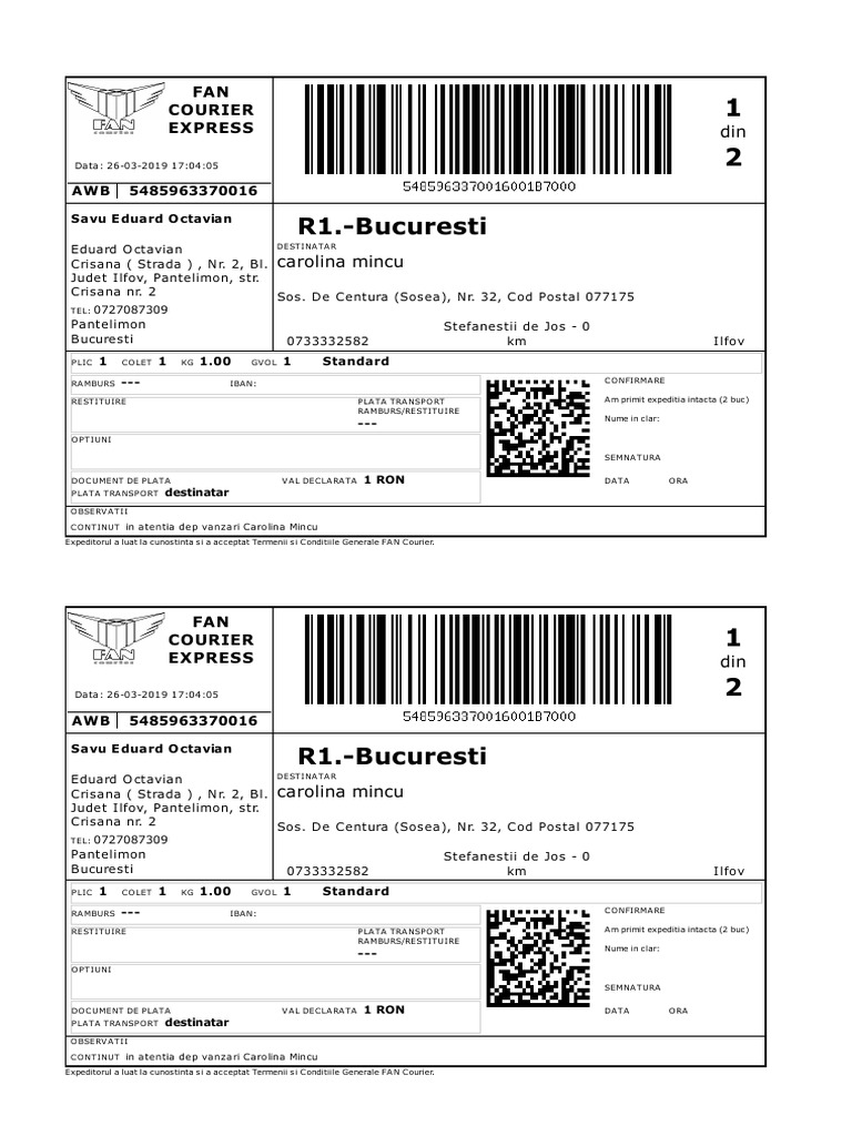 Plata ramburs fan courier. Serviciul este disponibil pentru expedițiile care au valoare ramburs în lei în limitele următoare. Pe primul trimestru al lui 2016 avem o creștere în volum de 20 spre 25 a declarat felix pătrășcanu managing partner fan courier. Jump to navigation. Caracteristici folosind serviciul de curierat rapid standard vei beneficia de colectarea sortarea transportul și livrarea de plicuri max 500 grame și colete max 30 kg si 60x50x30 cm într un termen minim de o zi și maxim 3 zile lucratoare din momentul preluării.