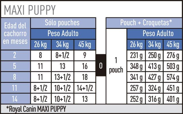 Royal canin maxi junior tabla. The science behind tailored nutrition. Si tú ves que con esa cantidad el perro está bien de peso y no se queda con hambre perfecto pero si ves que está delgado o que se queda con mucha hambre puedes aumentarle la dosis. Royal canin maxi puppy is specially formulated with the nutritional needs of your large puppy in mind. Royal canin maxi dog food contains an exclusive formula to help maintain your dog s digestive health.
