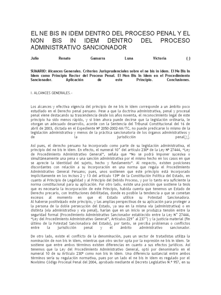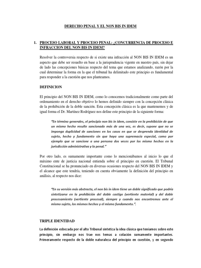 El contenido material del ne bis in idem implica la interdicción de la sanción múltiple por lo mismo y a juicio de la doctrina mayoritaria rige cuando concurre la llamada triple identidad de sujeto hecho y fundame nto. Dimensión nacional y supranacional del ne bis in idem. El protocolo 7 cedh. Heiner antonio rivera rodríguez juez del primer juzgado mixto de mariscal nieto moquegua peru el artículo 90 del código penal peruano de 1991 establece que nadie puede ser perseguido por segunda vez en razón de un hecho punible sobre el cual se falló definitivamente lo que debe considerarse principio de ne bis in idem o no bis in idem o prohibición de double jeopardy.