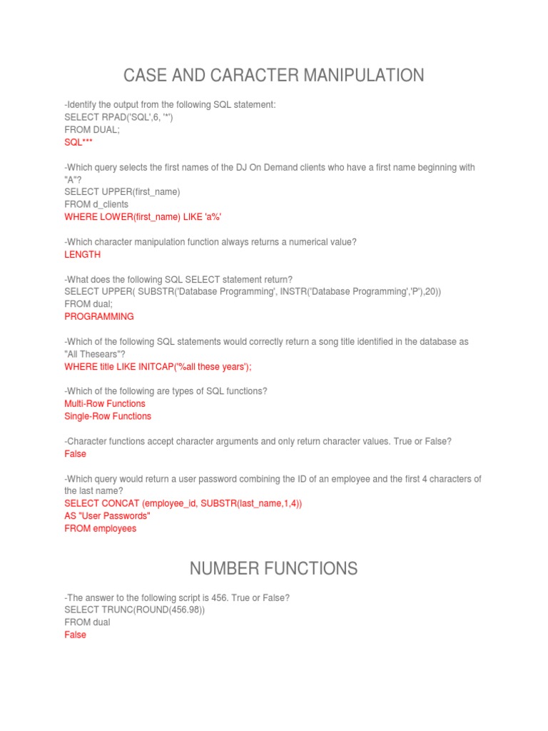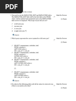 Mark for review 1 points. Select first name last name department id from employees where department id in 50 80 and first name like c or last name like s mark for review 1 points first name last name department id shelly higgins 110 first name last name department id curtis davies 50. What would the following sql statement return. Mark for review 1 points 6 7 the statement will not execute successfully.